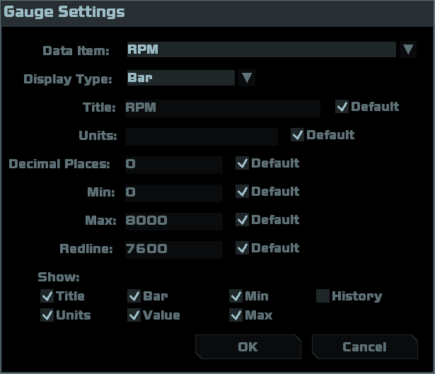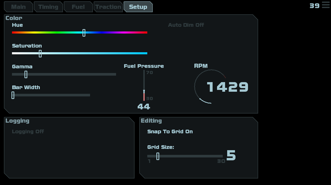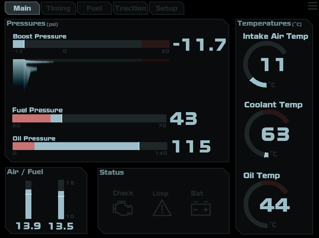 Gauges and tabs can be added/moved and rearranged at will in the car